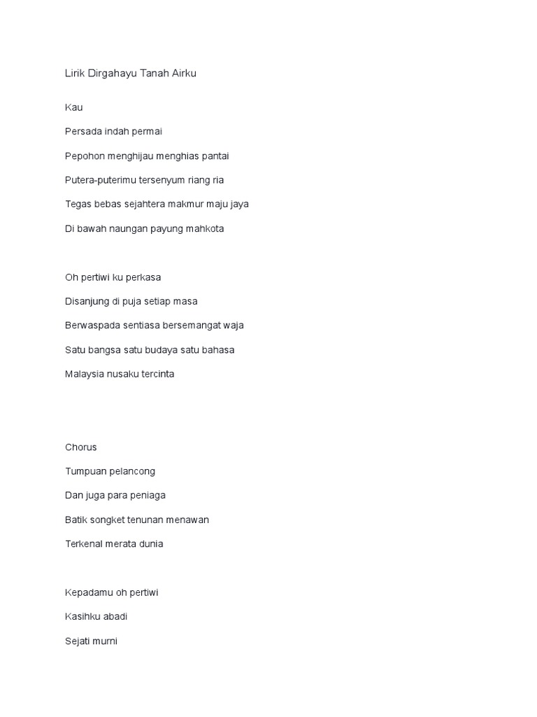 We will be posting a lot more in the upcoming weeks here at get a lyric so if you are one of our previous readers then feel free to check back to see if. Berikut cuplikan syair nyanyian teks dari lagunya. Inikan tanah airmu jua Akan ku serah jiwa dan ragaku Apa saja demi tanah airku.